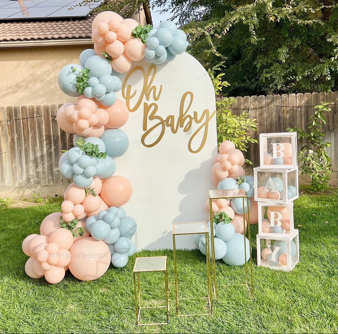 - Balloon Arch with total 150 balloons (Mix on Pastel Blue and Peach)